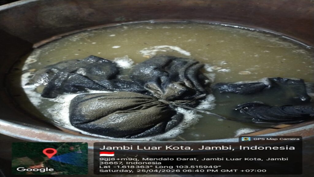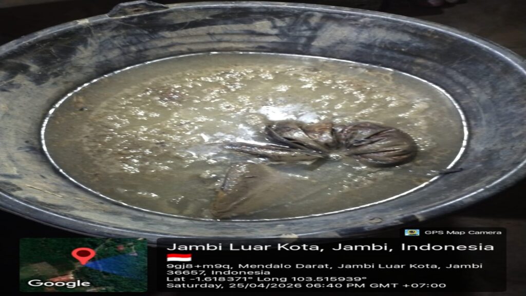 Setelah 24 jam, maka JMS ini telah siap dikocorkan ke lahan. Tanda JMS ini telah berhasil mengembang biakkan mikroorganisme adalah adanya busa di permukaan larutan JMS. Karena JMS ini telah berhasil dibuat, maka hari Sabtu, 25 April 2026, JMS inipun dikocorkan ke lahan galangan.